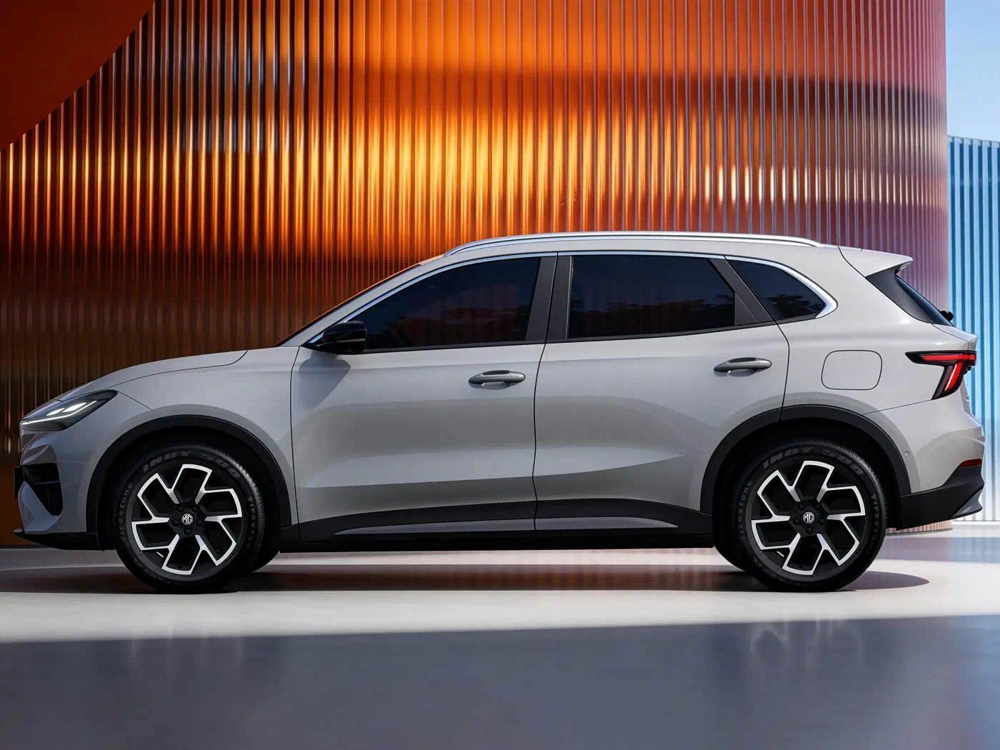 再来看车身侧面部分,MG 4X采用了传统SUV的稳重设计,没有过度张扬的线条,却在细节处尽显质感。多边形车窗轮廓饱满,下沉式车顶搭配后翼子板突出的腰线,营造出独特的光影效果。前侧凌厉的线条与车门下方的内凹设计,勾勒出车身的立体感,让整车看起来饱满而富有力量。值得一提的是,新车并未采用当下流行的隐藏式门把手,而是选择了传统机械门把手,在低温、冰冻、沙尘等环境下,稳定性与耐用性更有保障,更贴合家庭用户的实用需求。外后视镜、侧裙、轮眉的黑化处理,配合侧窗镀铬饰条,平衡了运动感与精致感,车顶行李架与全景天幕的配备,既提升了装载能力,又优化了车内通透感。